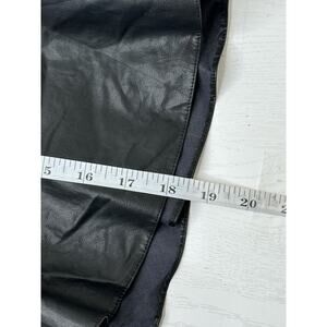 Very cute skirt that is of jersey material on the top half and is ruffled vegan leather at the lower half. Has a back zipper closure.