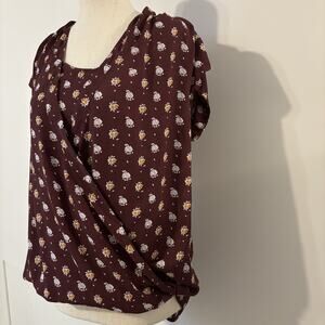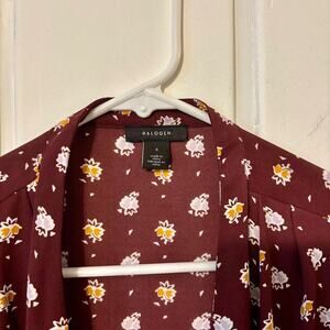 Halogen Floral Blouse Size S Maroon with Yellow Flowers Loose Fit Lightweight