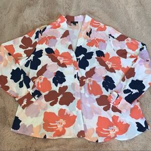 Halogen Coral Multi-Colored Floral Button-Up V-Neck Blouse