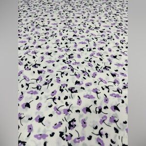 This gorgeous Halogen floral print blouse showcases a delicate botanical design in soft shades of purple and black, set against a fresh white background. Featuring cap sleeves, a classic crew neckline, and a relaxed, flowy fit, this lightweight blouse is perfect for both casual and dressy occasions. The tag reads Size I, but based on the measurements, it’s estimate a Size Large.