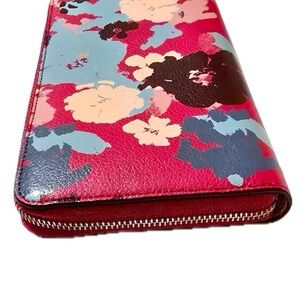 Stylish floral wristlet wallet with vibrant colors. Perfect for any occasion.