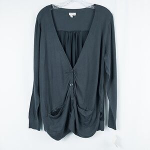 Halogen For Encore Cashmere Blend Silk Back Cardigan Womens 1X Ink Blue Ruched