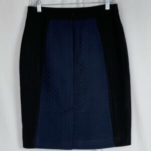 Halogen Front & Back Paneled Navy Blue & Black Career Office Pencil Skirt NWOT