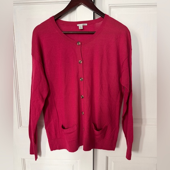 Chic fuchsia cardigan with button-up front. Soft fabric and front pockets. Ideal for layering. Size XL Petite. No obvious issues in good condition.