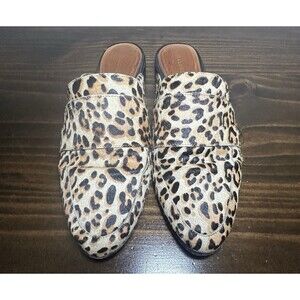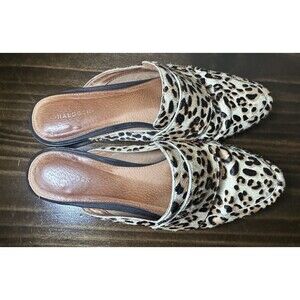Halogen Genuine Calf Hair Leopard Animal Print Mules Slip On Shoes Women's 9