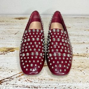 Halogen Genuine Leather Maroon Studded Loafers Size 7.5M