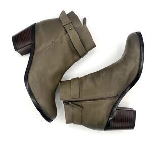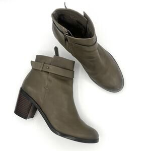 Halogen Glenna Leather Ankle Boots Olive Green Size 7.5 Preppy Casual Chic
