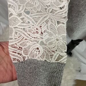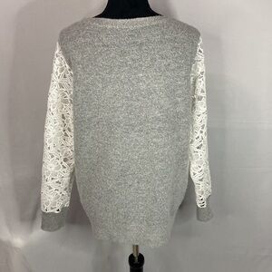 Halogen Gray Chunky Wool Blend Sweater with Lace Sleeves