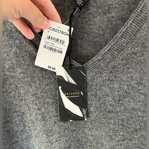 NWT Halogen Gray Dark Heather 100% Cashmere V-Neck Knit Sweater Size Small