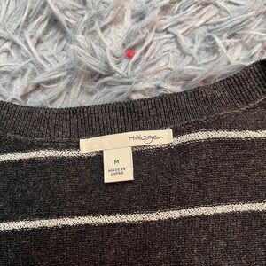 Halogen Gray White Striped Metallic Button Down Cardigan Size M
