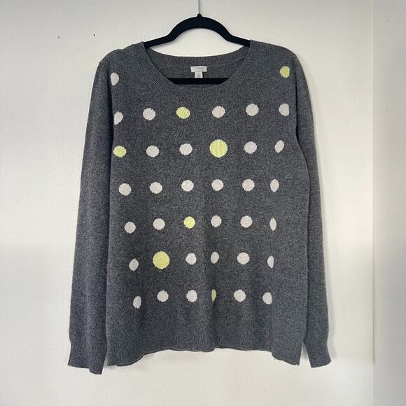 Halogen Grey Polka Dot Cashmere Crewneck Sweater