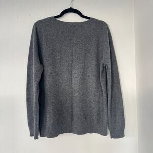 In good preowned condition. Grey with white and light green polka dots on the front. 100% cashmere.