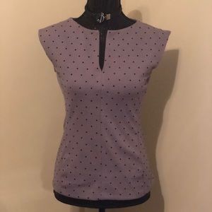 Halogen Grey Shirt with Black Polka Dots.