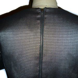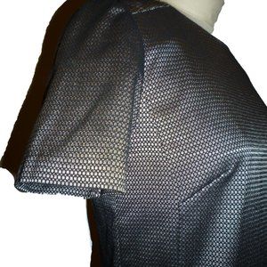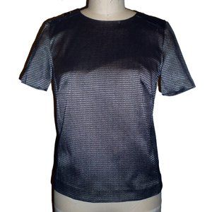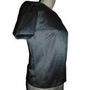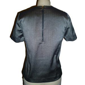 Business casual at its finest. Throw on this super flattering and luxurious Halogen short sleeve black and silver metallic geo jacquard tailored blouse.
