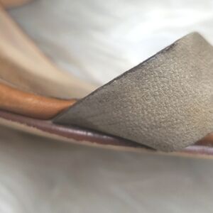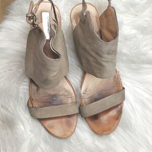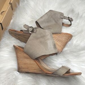Halogen Brand Wedge Sandal in the Haclarette-Lea Style. Gorgeous Mushroom color also could be called Taupe nubuck, with synthetic sole and lining. Adjustable strap with buckle closure. Approx 3.5" wedge. Fits True to Size!