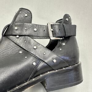 Halogen Hailey black leather harness cutout bootie studded size 8.5