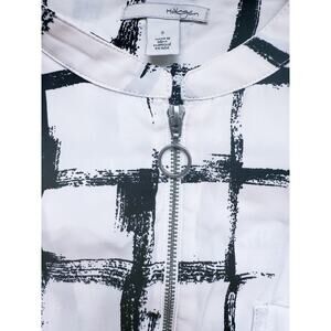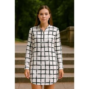 Halogen Half Zip Tunic Top Black White Brushed Checker Print Small Artsy Minimal