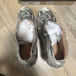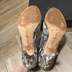 Step out in style with these chic Halogen peep toe booties. Featuring a striking snake print design, these shoes are perfect for adding a touch of elegance to any outfit. The black and cream colors make them versatile for any wardrobe.