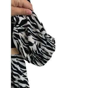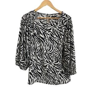 Halogen Hidden Button Long Sleeve Blouse In Ivory C- Black Feather Tiger Size Medium NEW