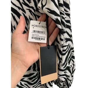 Halogen Hidden Button Long Sleeve Blouse In Ivory C- Black Feather Tiger M NEW