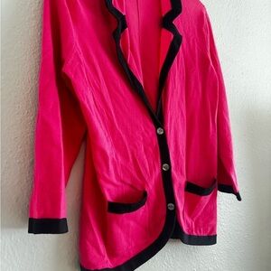 Halogen Hot Pink and Black Knit Stretch Blazer Sweater 3/4 Sleeve sz M