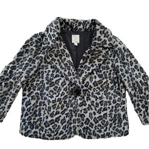 Halogen Jacket Black Gray Leopard Print Faux Fur Cropped Swing Blazer Medium