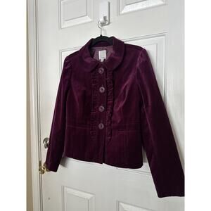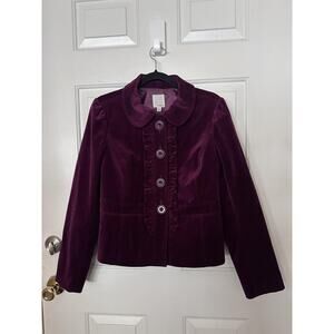 Halogen Jacket Womens Medium Purple Velvet Ruffle Front Peter Pan Collar Peplum