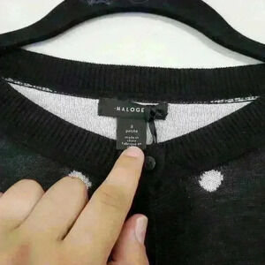 Halogen Jacquard Crewneck Polka Dot Cardigan