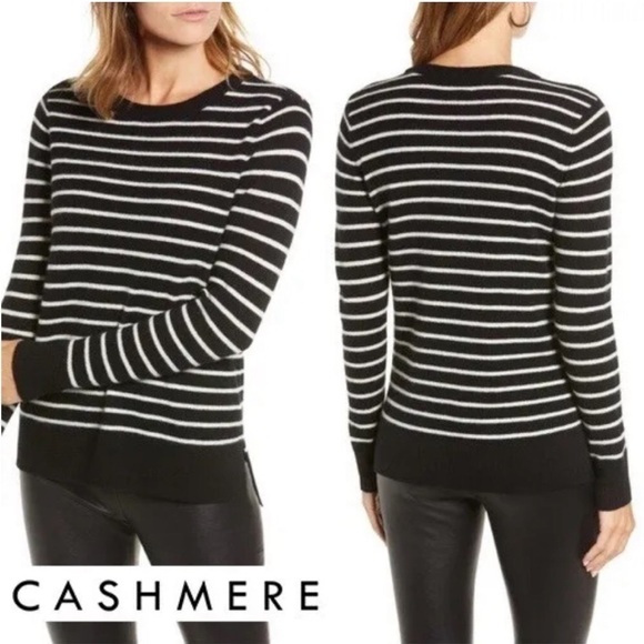 Halogen Josephine Cashmere Striped Crew Neck Long sleeve Sweater