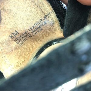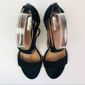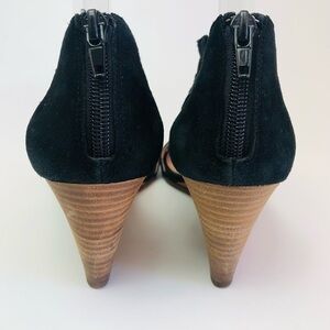 Halogen Kyla sandal in excellent condition. Strappy suede upper, approximate 3' slender stacked wedge, rear zipper.