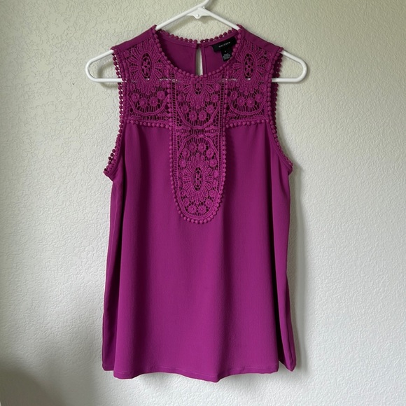 Halogen Lace & Crepe Sleeveless Top - Raspberry