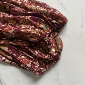 Lace-up front ties and balloon sleeves enrich the boho vibe of this metallic-dotted chiffon maxi dress boasting an enchanting floral print.