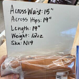 • Measurements: Across Waist = 15", Across Hips = 19", Length = 17"