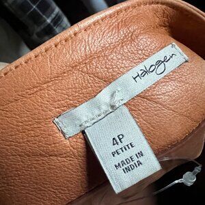 Halogen Leather Mini Skirt With Zipper Pockets Camel Tan Color Size 4P