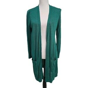 Halogen Long Knit Open Front Cardigan Sweater Green Women’s Size S Petite