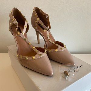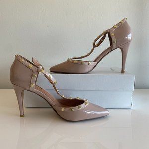 Halogen Martine Studded T-Strap Patent Leather Pump Size 8.5