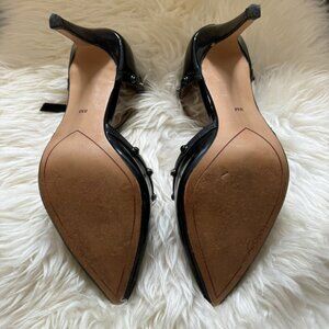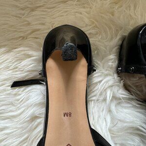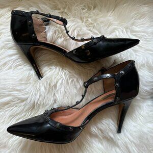 Halogen, size 8 T-Strap Studded Heel, Black with Black metal accents.
