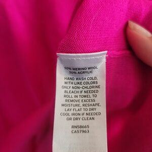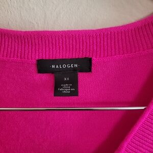 Halogen, Merino Wool Blend V Neck Lightweight Sweater, Bright Fuchsia, Size XS.