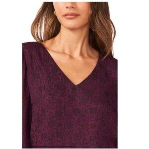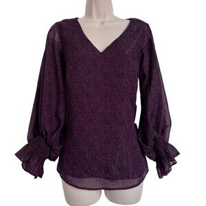 Halogen Metallic Balloon Sleeve Blouse Size XS V Neck Sheer Sleeve NWT Purple