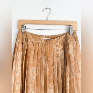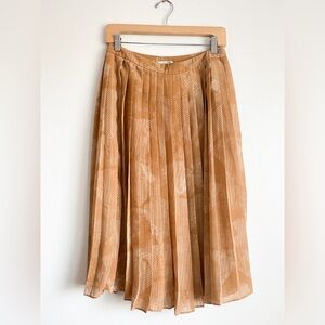 Halogen Midi Printed Tan Pleated Skirt Full Flowy Classy Neutral Formal Casual 2
