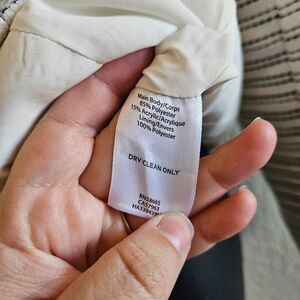 This is a unique moto style blazer by Halogen. It is white and black with two zippered pockets on each side and a full zipper on the front two snap closures at the neckline. There is a solid white lining inside.