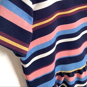 Halogen Multi-Colored Striped Peplum Top short sleeves with zip up back.