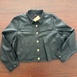 Halogen NWT | Faux Black Leather Crop Shirt Jacket Coat | size XXL