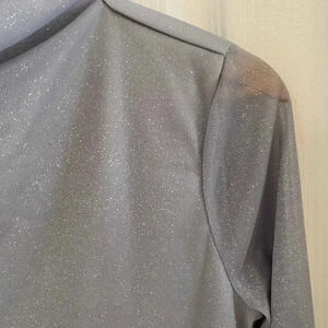 Halogen NWT Womens Silver Sparkle Mock Neck Mesh Blouse