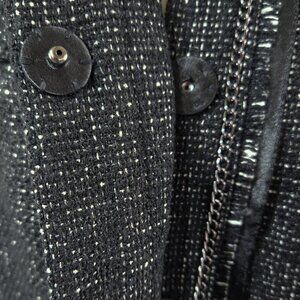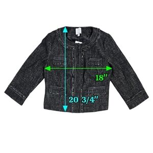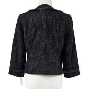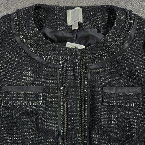 Halogen NWT Wool Blend Black Tweed Chain Detail Fringe Trim Snap Up Jacket
