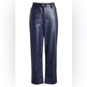 Halogen Navy Blue Faux Leather Straight Leg pants