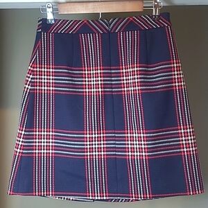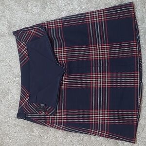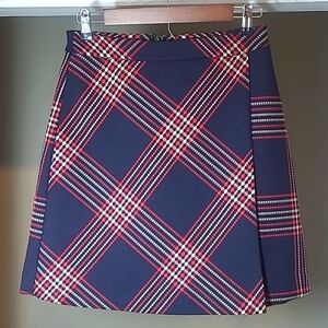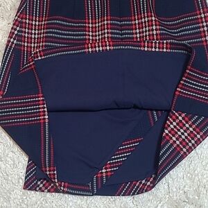 Classic plaid meets timeless tailoring in this Halogen navy & red plaid jacquard mini skirt. Perfect for work, school, or casual outings, this A-line silhouette offers a flattering fit with a hint of texture. Pair it with tights and boots for a chic fall/winter look, or style it with a crisp blouse for a polished office vibe.