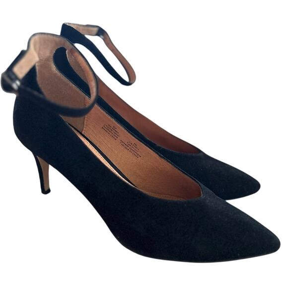 Halogen Nordstrom Black Leather High Vamp Ankle Strap Pointed Toe Heel