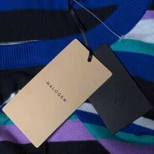 Halogen (Nordstrom) Crew Neck Sweater Blue- Lavender Multi Stripe XL New