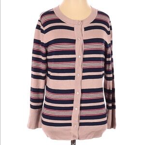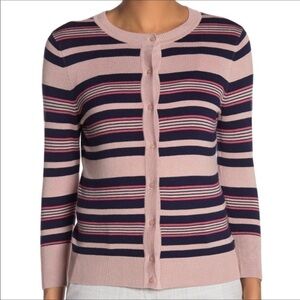 Halogen Nordstrom brand Striped Crew Neck Cardigan Sweater, size S small